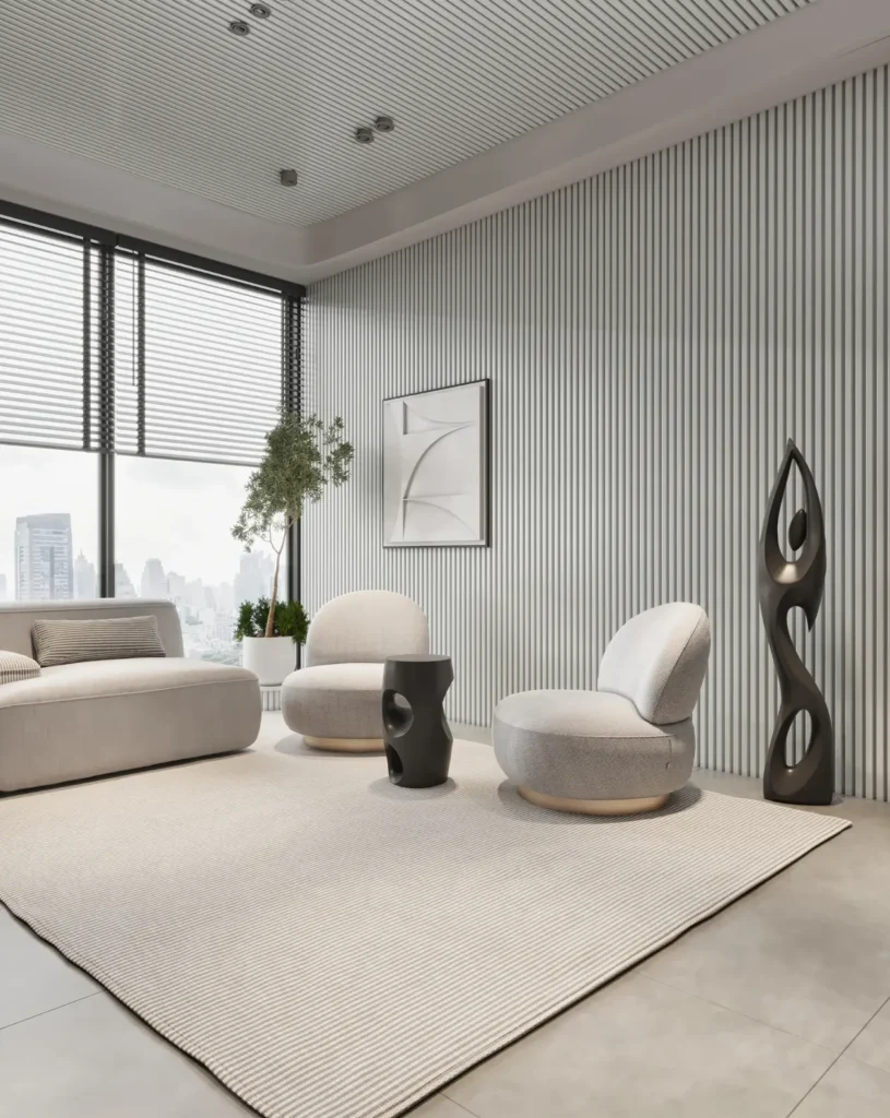 Duo an ingenious ceiling and wall system that celebrates the beauty of contrast. By combining two distinct materials, textures, or colours, Duo adds a captivating visual depth that sets it apart from conventional panels. Let your imagination run wild as you mix and match, creating personalized patterns and designs that transform your interiors into a work of art.